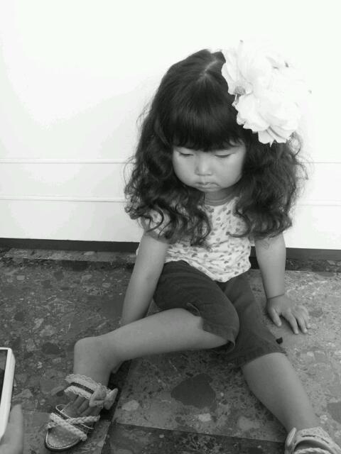 髪をぐりぐりに巻いて、大きめ花飾りを乗せただけです☆