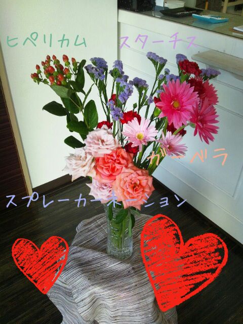 前のバラが長くもったので、バラも一緒に入ってます♪
