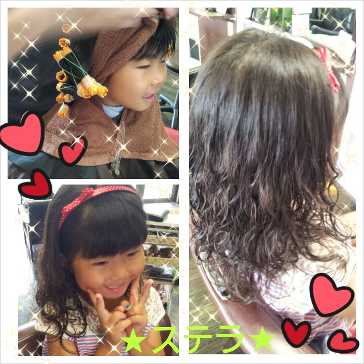 ステラの看板娘ちゃん、幼稚園夏休みなんで、先日、初めてのパーマかけました☆