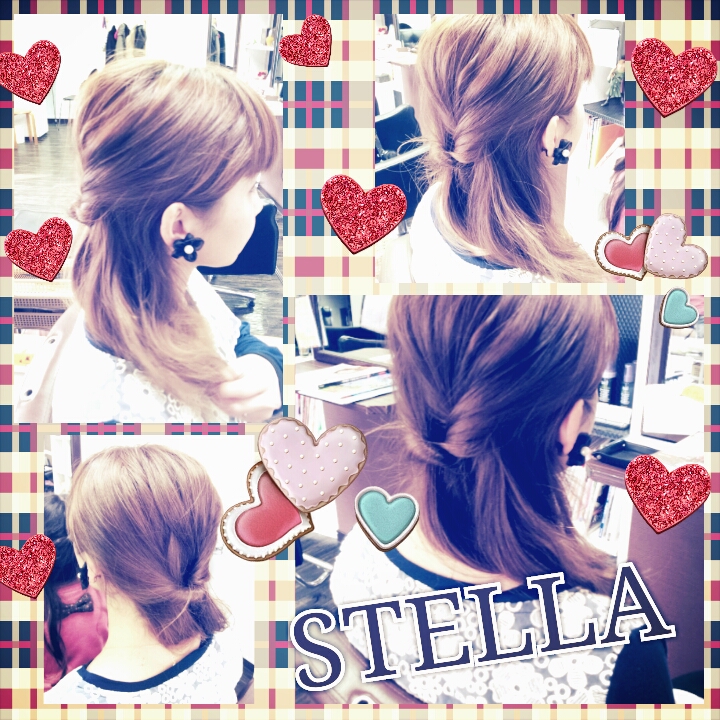 耳上の髪をサイドに寄せ、1つに束ね、毛先を結び目にクルンと割り入れただけ!!!