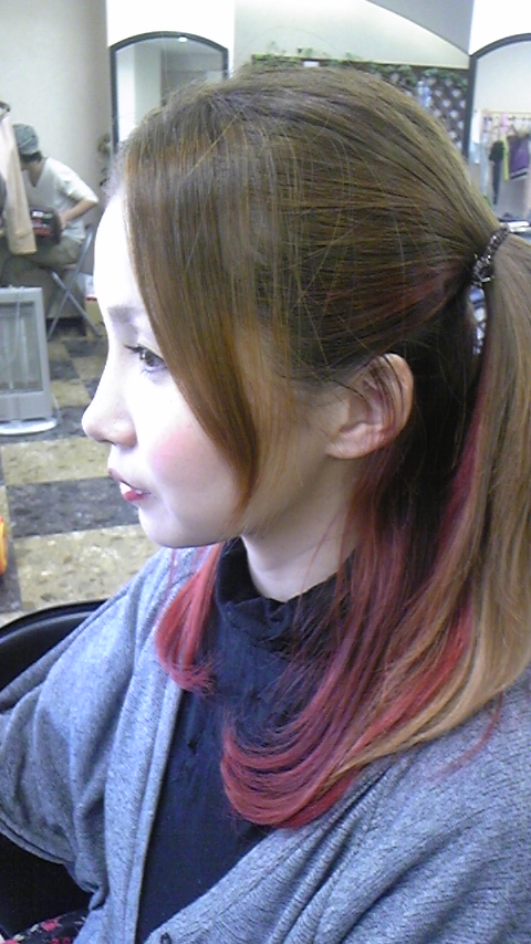 元が13トーンくらいの明るさで、毛先の方はだいぶ色が抜けてました、そこにマニキュアのREDをのせただけ◎